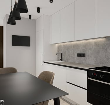Iš naujo atgimęs 50 kv.m. 2 kambarių butas su užsakovų pageidautais baltais, pilkais tonais.