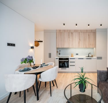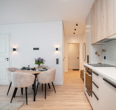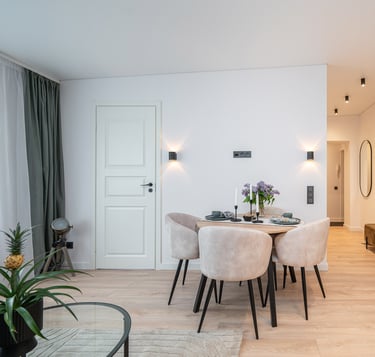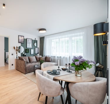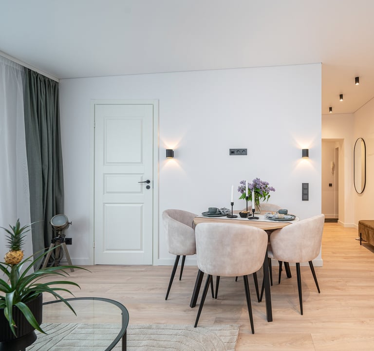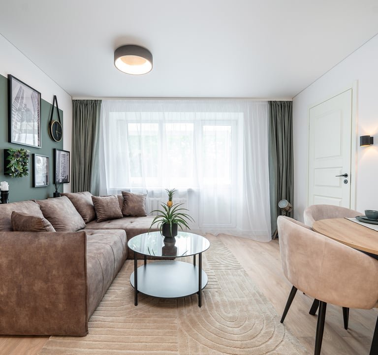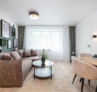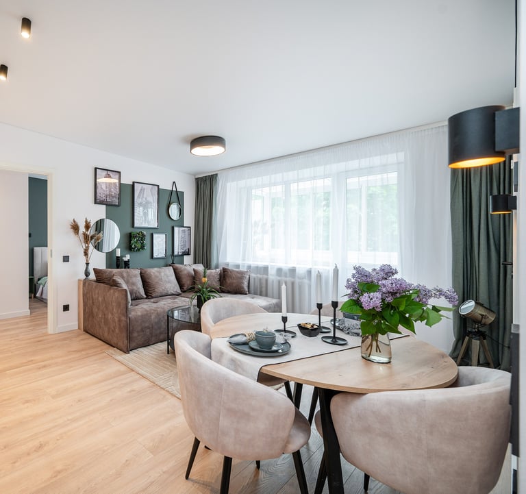 Būstas atnaujintas šviesiomis, šiltomis spalvomis, dėl to gavosi jaukus, šeimai pritaikytas interjeras.