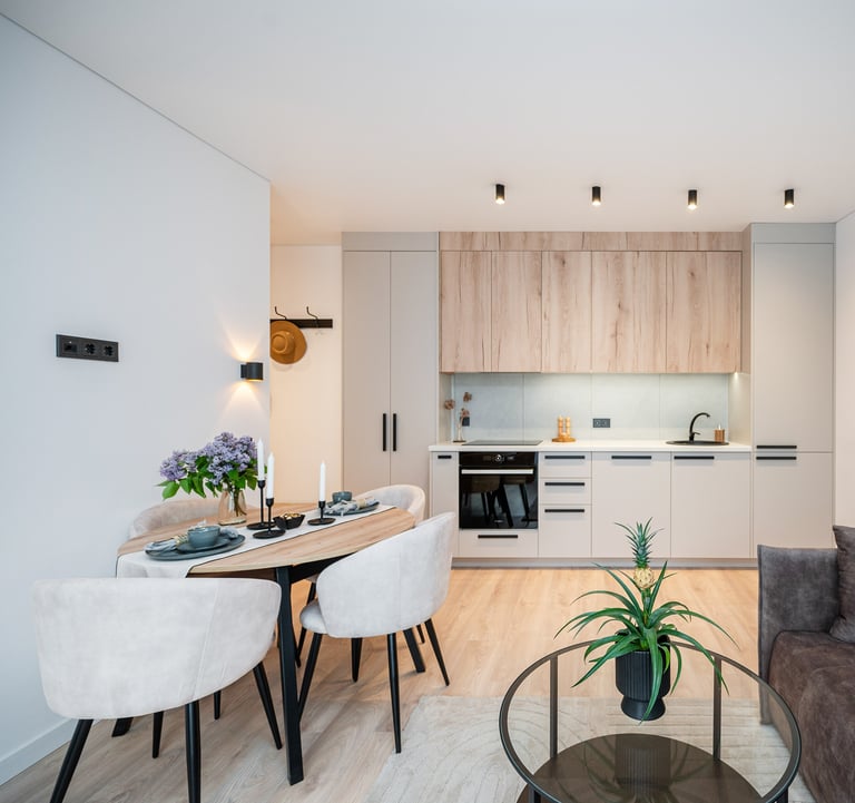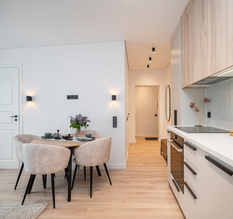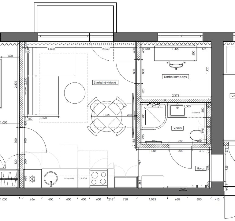 Kartu su Loreta ir Aurimu (MB Metas NT) įrengėme 52 kv.m. butą Vilniuje, Naujininkų rajone. Šiame bute virtuvė buvo perkelta į svetainės zoną, tad rezultate turime 4 kambarius (svetainę-virtuvę, miegamąjį, vaiko kambarį bei darbo kambarį), dušinę, taip pat suformuota drabužinė, tad pilnai išnaudotas kiekvienas šio objekto kvadratas.