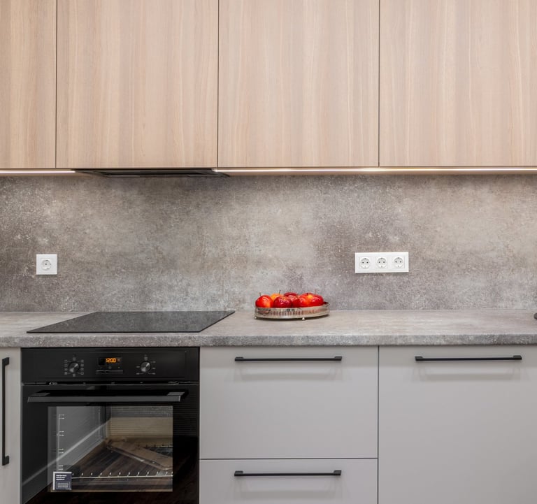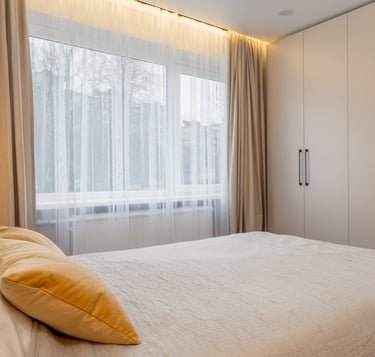 Šiame bute perkėlėme virtuvę į svetainės erdvę, o perstatėme tik san.mazgo sienas jį padidindami. Virtuvę perkėlus į kitą erdvę, jos vietoje buvo suformuotas darbo kambarys.