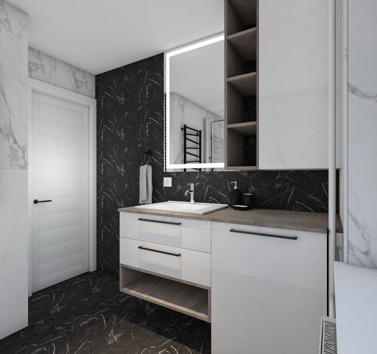 Perplanuotas senos statybos daugiabutyje esantis 70 kv.m. 3 kambarių butas - pavyzdžiui, 6 kvadratinių metrų virtuvė perkelta į buvusį kambarį, o vietoje virtuvės atsirado erdvus, šviesus vonios kambarys. Likusi buto erdvė - holas, svetainė bei du miegamieji kambariai.
