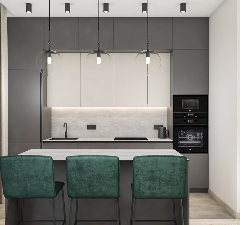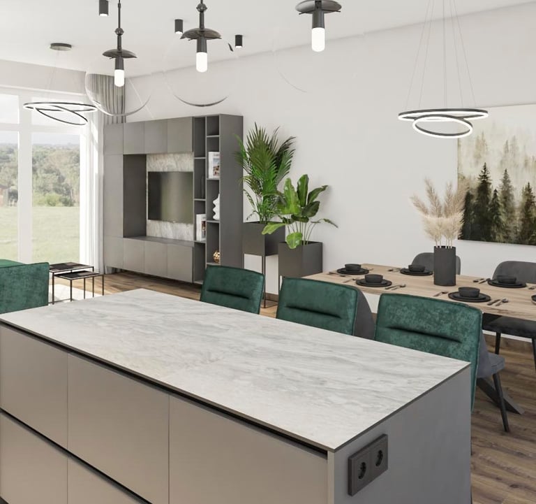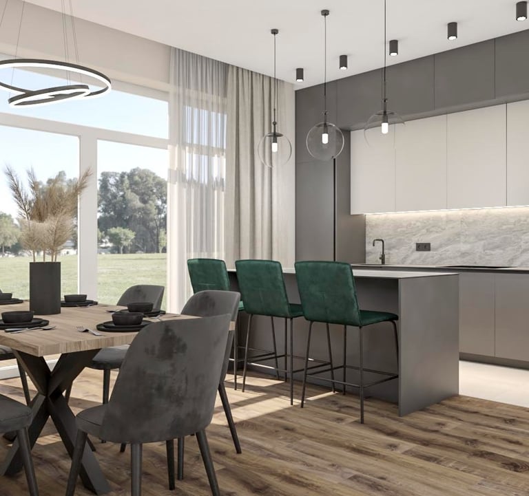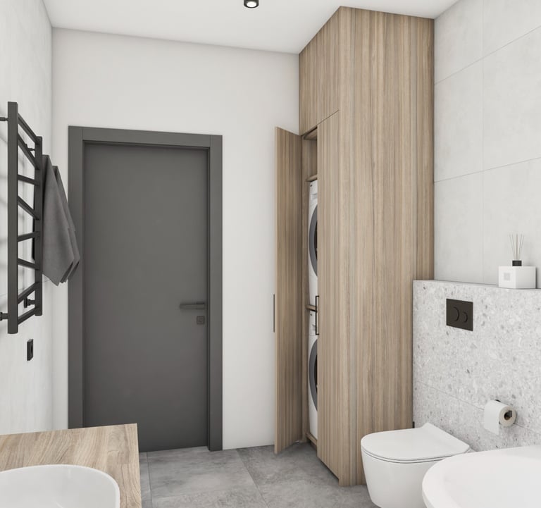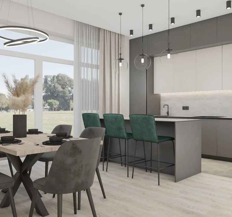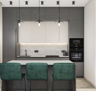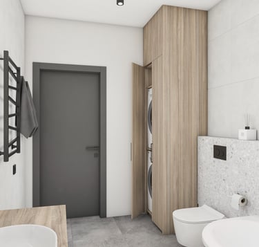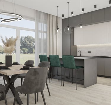 Šiam namui projektuojamos svetainės, virtuvės, valgomojo ir dviejų san. mazgų erdvės. Siekėme išgauti šviesų, jaukų, interjerą. Būstas vis dar yra įgyvendinimo procese - nekantrauju pamatyti rezultatą!